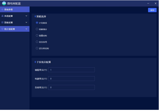 满足储能系统设备参数的配置、电价参数与时段的设置、控制策略的选择。目前支持的控制策略包含计划曲线、削峰填谷、需量控制等。