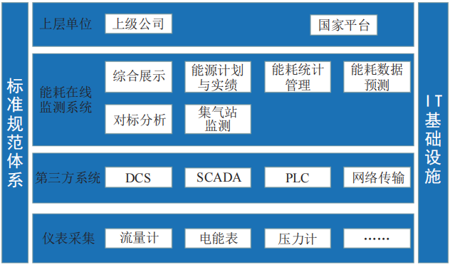 目前案例企业能源管理相对粗放,因此需要建设自身的能源管理系统,采用信息化、自动化技术集成企业能源系统数据采集、分析处理和管理等功能,从而提高能源利用效率完成节能任务目标。