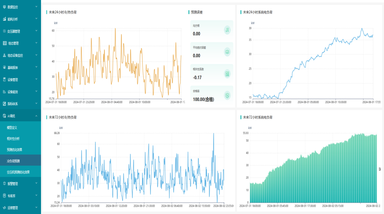 基于能耗优、成本低和碳排放少的经济优化调度;预测冷/热负荷,提出空调、水泵等设备运行建议,提升节能减排能力。
